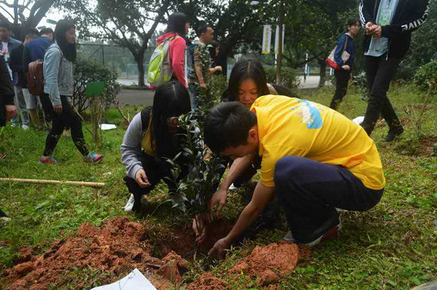 整个植树活动井然有序,首先,李锦堂做动员讲话,他提出,爱护环境,人人有责。希望同学们在平时的生活中,遵守禁止乱扔各种废弃物的相关规定,把废弃物扔到指定的区域;尽量避免使用一次性的饮料杯、饭盒、塑料袋,纸盒等,从而减轻垃圾处理工作的压力;爱护花草树木,保持校园清洁。他相信只要大家齐动手,从节约资源和减少污染着手,调整一下自己的生活方式,就一定能保持校园的优美环境。