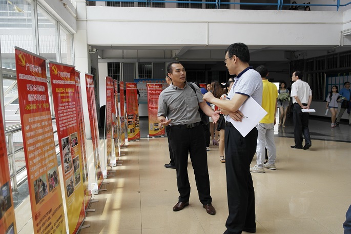 会后,全体与会人员移步我校教学楼A栋二楼参观“党建与思想政治工作创新案例”的展示。在“大思政”背景下,我校在党建、思想政治教育工作、学风建设和校园文化建设领域,将形成更多有特色、有推广价值、有品牌效应的创新案例,开创我校党建与思想政治工作新局面。