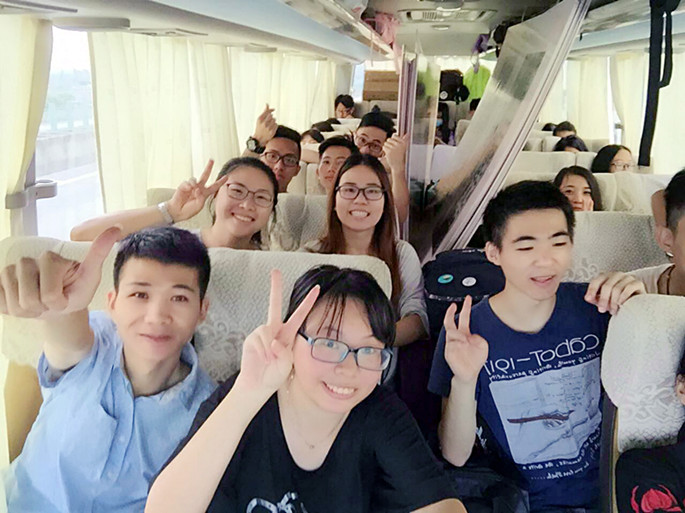 艺希之晨筑梦服务队乘车从学校出发