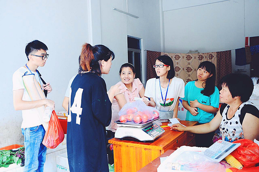 街道上,村民们都很欢迎服务队的到来。记得第一天到达龙村镇第三小学已是中午,学校附近的饭店老板得知服务队下乡的目的后,他热情地说:“自己煮饭多麻烦啊,快来我这里吃吧,不要钱。” 村民热情地告诉我们,在村里即使晚上单独在外面行走都不会有危险,这个村子民风淳朴,非常安全。