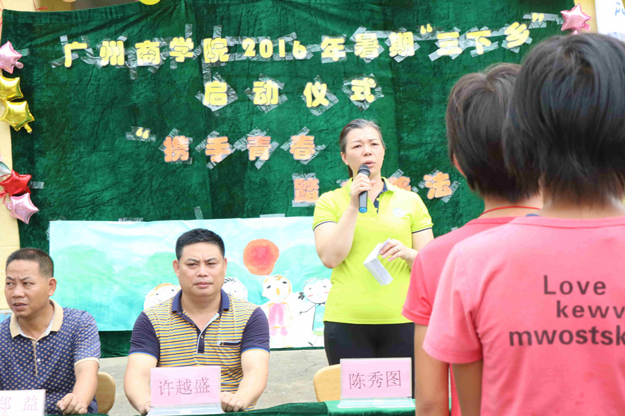 陈秀图也对服务队提出三点要求:第一,希望各位队员在活动开展期间,将理论知识与社会实践结合起来,课堂理论的学习通过实践活动来检验和转化,达到学以致用的目的;第二,各位队员必须充分发挥团队协作、无私奉献的志愿精神,努力发挥集体智慧,达到通力合作的效果,争取每一项任务都能够顺利高效地完成;第三,把传授知识与能力提高相结合,尤其是支教组的队员一定要认真备课,向小学生传播先进的文化知识,丰富小学生的第二课堂文化活动,并努力提高自身的知识储备和教学技能。同时,她祝愿西埇小学越办越好,祝愿本次三下乡社会实践活动取得圆满成功。