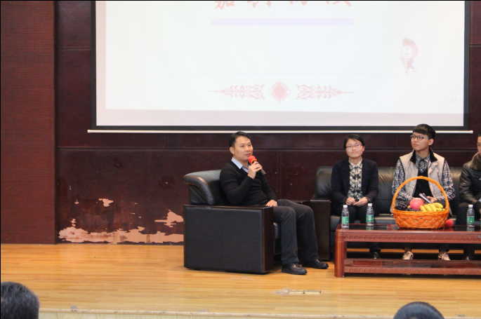 访谈嘉宾校团委书记何柏略等台上接受访谈发言