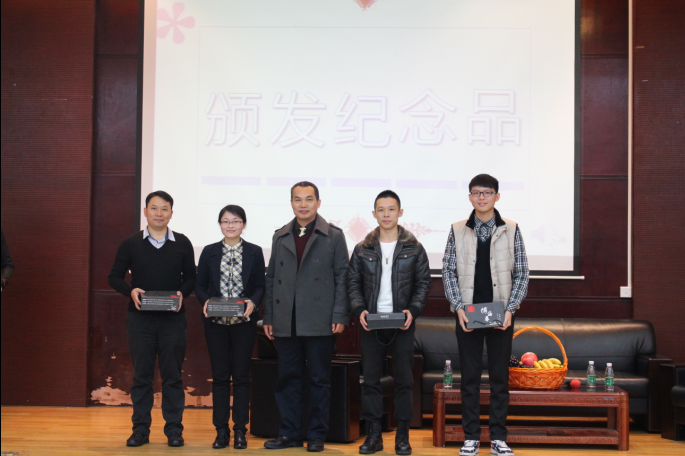 校党委书记谭马利为访谈嘉宾颁发纪念品