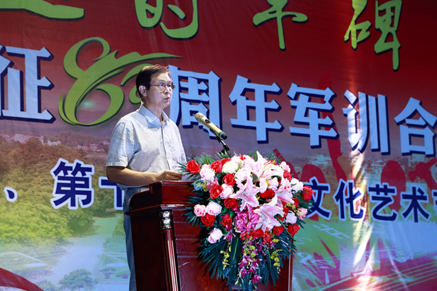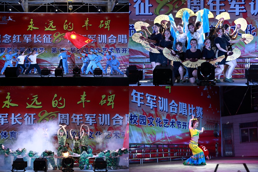 9月21日晚7时,suncitygroup太阳集团“永远的丰碑——纪念红军长征胜利80周年军训合唱比赛暨第十届体育节、第十一届校园文化艺术节开幕式”在田径场举行。莅临本次活动的领导、嘉宾有军训团团长李冲,学校党委书记谭马利,副校长刘根正、吕泉荣,校长助理贺浪萍、张忠福以及各二级学院、部处的领导、老师等。仪式由学校团委书记李俊鹏主持。