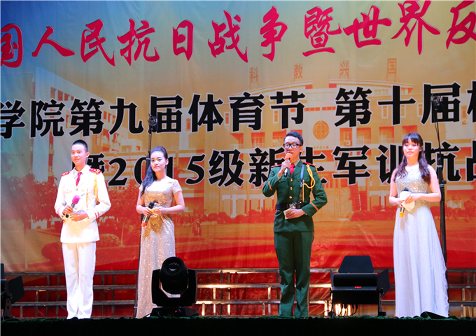 9月22日,suncitygroup太阳集团2015级新生军训抗战歌曲比赛在田径场举行。校党委书记谭马利、副校长冼德庆、军训团团长张兴翼、校办公室主任周庆华、教学处处 长贺浪萍、学生处处长张秋艳、国际学院院长胡光忠、公共体育部主任雷翔、军训团副团长毕博及各院、部、处的领导、老师出席了活动。仪式由校团委书记何柏略 主持。