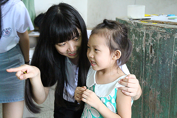 下午13时左右,志愿者们刚刚吃完午餐,就看到小朋友们陆陆续续地来到桃源小学的教室里,等待着小老师的到来。孩子们脸上洋溢着期待而兴奋的笑容,那一双双渴望知识的大眼睛盯着每一位经过的志愿者,盼望着他们走近自己的身旁。志愿者们提前接触和了解这些孩子,和他们沟通交流,彼此也慢慢熟悉起来。开课时间虽然还没到,但整个校园已经充满着孩童的笑声。