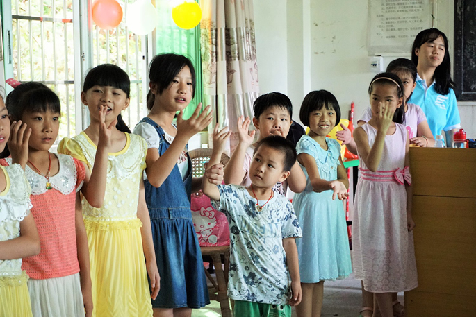 为丰富小学生的课余活动,7月14日上午,服务队后勤组精心准备了趣味运动会。受下雨天气的影响,运动会转移到室内进行,队员们用气球、彩带布置教室,为孩子们营造一个欢乐愉快的环境。趣味运动会分五个比赛项目:小勺运球接力赛,快速反应,叠纸板,摸石头过河和抢凳子。在了解游戏规则后,孩子们争先恐后地参加比赛,教室内一片欢声笑语。每一个孩子都尽情地投入到比赛中,获胜时会抱在一起开心大笑,输了的也会在脸上流露出小小的失望,但在下一个项目开始时,又会浮现惊喜和期待的神情,仿佛这次是必胜的样子。比赛过程中,队员们不断叮嘱孩子们要注意安全,避免在比赛过程中受伤。此次趣味运动会,小老师们有目的地通过趣味比赛这一方式来培养小学生的竞争意识和团结协作能力。