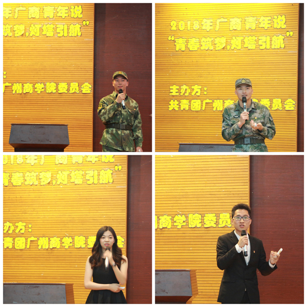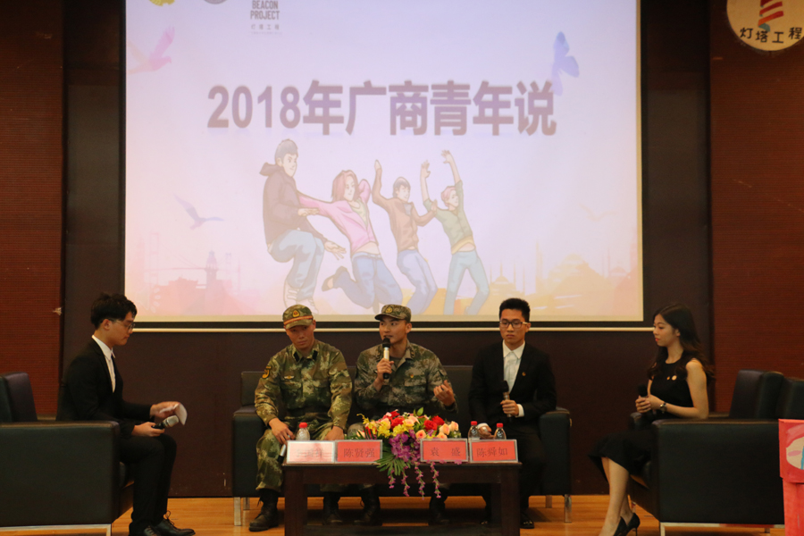 首先,现场通过观看上一年广商青年说的美好祝福的视频,引出了当晚四位优秀广商青年的故事。青年代表们围绕“青春、奋斗、感恩”主题,通过演讲等方式分享人生感悟和对青春含义的诠释。“青春是用来奋斗的,不是用来挥霍的”,他们用真挚的感情、铿锵的语言,带给大家视听享受的同时,传递着向上向好的正能量。在最后的采访环节,四位青年代表更是从实际出发为学生们解答疑惑,清晰了自我前行的目标及方向。