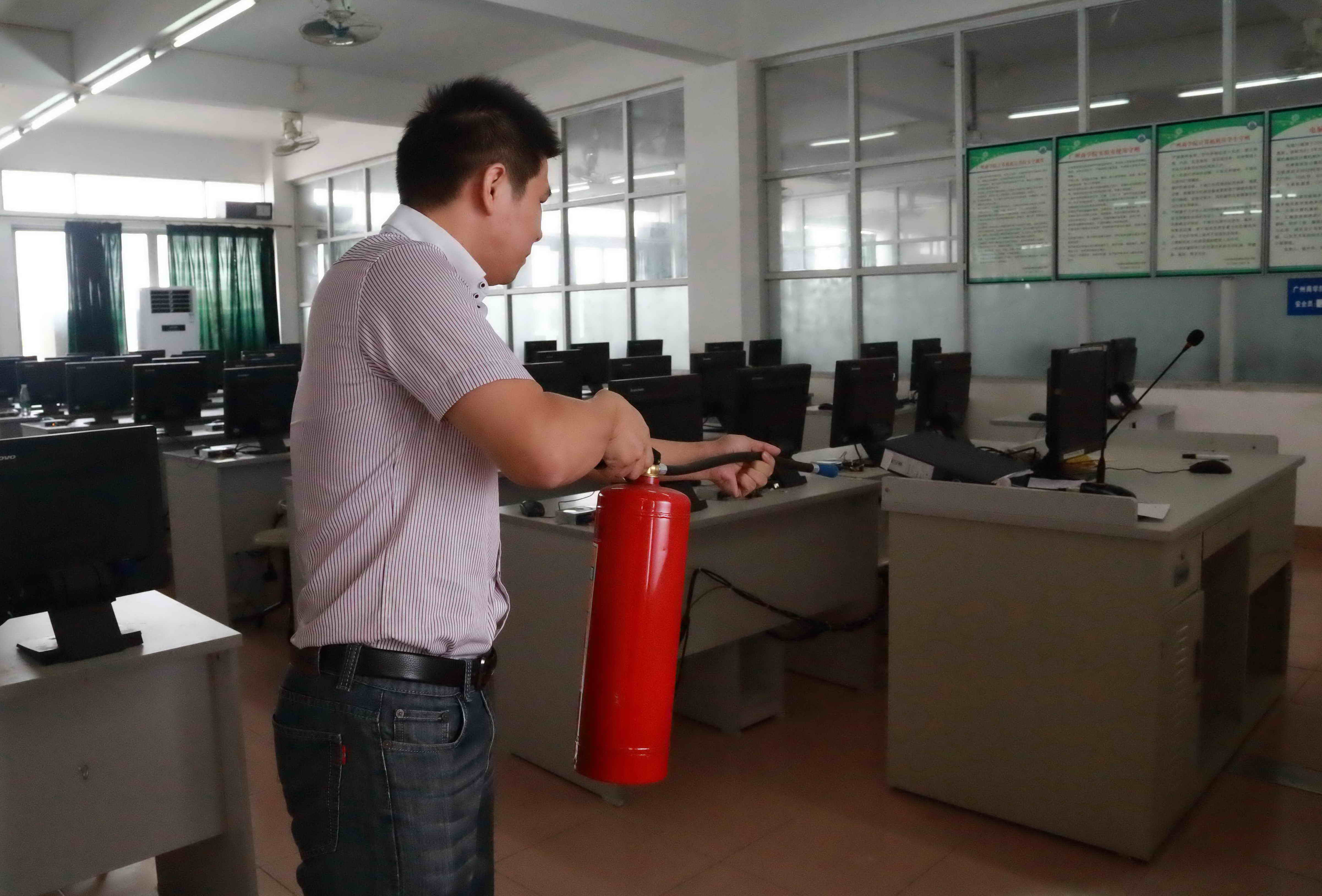 为了增强我校实验室管理员及师生的消防安全意识,掌握消防逃生技能和消防器材备的使用方法,11月11和12日上午,实验实训中心分别在实训楼S3002电脑室及商A栋教学楼的电脑10室进行了消防疏散演习。为保证演习的科学性和有效性,部门领导和保卫处缜密规划,制定了此次的演习方案,并由实验实训中心副主任刘志雄、钟越平助理现场指导。
