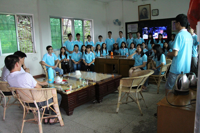 7月10日下午,信息技术与工程学院“情筑桃源”三下乡服务队与桃源小学校方见面会在桃源小学行政办公室举行。桃源村村委书记张旋、桃源村妇联主任林运玲、桃园小学校长张汉城,以及服务队全体队员出席见面会。