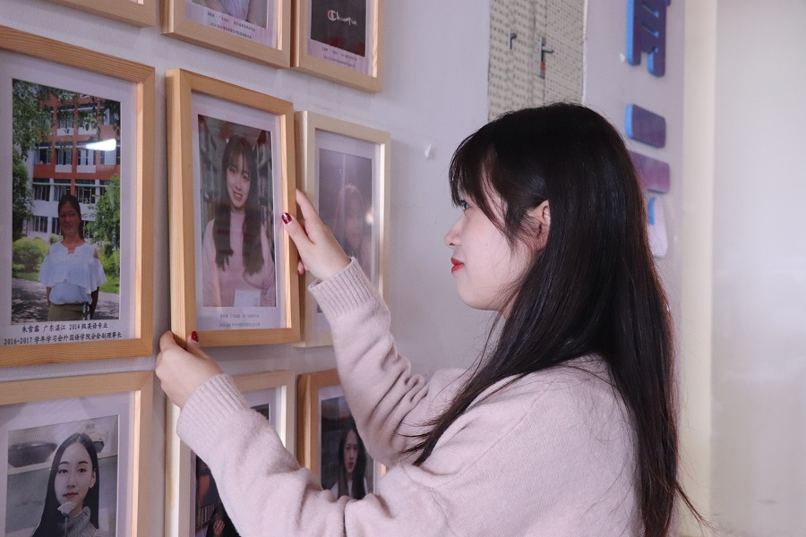 在全场的注目下,由徐超书记授予他们照片框,接着,各优秀核心学生干部亲手将自己的照片挂在外国语学院青云榜。白色的墙壁上挂满了历届优秀核心干部的照片,如今他们也能在这留下自己活泼阳光、青春洋溢的面容。紧接着,由核心优秀干部代表丁玮上前发言。她对书记和老师们长期以来的指导和栽培以及一起工作的团学干部的包容致以真挚的感谢,同时她希望新一届团学干部再接再厉,永葆热情,共同建设优秀的外国语学院团学组织。