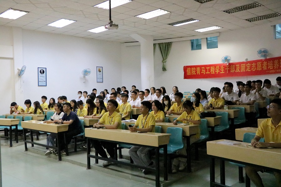 为庆祝中国共产党成立100周年,认真学习宣传贯彻习近平总书记“七一”重要讲话精神,在团员青年中扎实推动“学党史、强信念、跟党走”学习教育活动。信息技术与工程学院11月4日晚于实训楼209组织观看了“学习贯彻习近平总书记‘七一’重要讲话精神”灯塔学习会暨“广东青年大学生增强做中国人的志气、骨气、底气” 主题团日省级示范活动视频,出席本次活动的有信息技术与工程学院团委书记、20级辅导员陈钰纯,团委副书记、20级辅导员甘志健,团学组织干部及其固定志愿者,班团干部学生代表。本次活动由团委秘书长邓文健主持。
