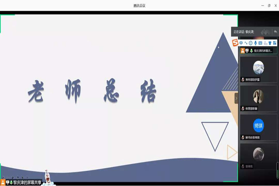会议尾声,由学生会指导老师蔡俊发对本次会议作总结。他首先对本次培训会议进行肯定,并表示这有利于提升干部们的能力以及朝着规范化的方向发展。同时老师对全体干部提出三点要求:一是规范行为,遵守礼仪礼貌。提高自身修养,形成良好的工作作风。二是加强学习,明确责任,勇于担当。积极提升作为一名学生干部的工作能力,为返校之后的工作开展奠定良好的基础。三是做好干部榜样。他希望全体学生干部要积极配合学校疫情防控开展的各项工作,在工作中要发挥学生干部的积极性,带动同学积极配合学校的工作开展。