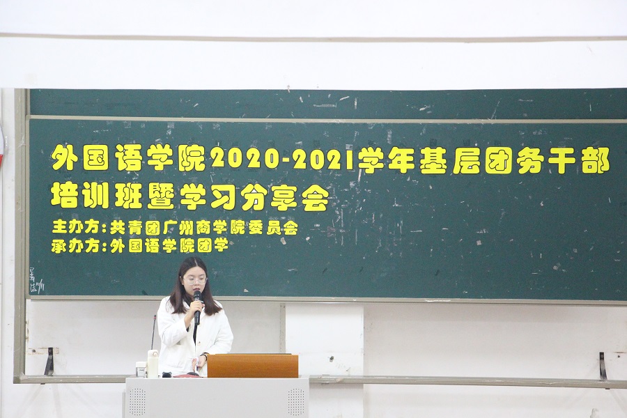 为深入贯彻落实习近平总书记关于青年工作的重要思想,增强基层团务干部的专业素养,更好地推进班团一体化制度的实施,我院团委于11月10日19:30在一教111举办2020年基层团务干部培训班暨学习分享会。我院团委书记赖雯慧、学生会指导老师伍思颖出席了本次会议。