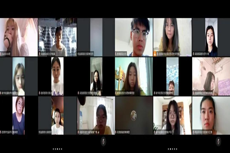 为贯彻落实习近平总书记视察清华大学重要讲话精神,筑牢思想根基,树立理想信念,展现青年学子的蓬勃朝气。外国语学院团委于2021年5月4日上午10:00举行“习近平在清华大学考察”线上专题学习会,出席本次活动的有外国语学院团委书记蔡文蝶、团委学生副书记姚焕雯、团委秘书长郭懿、团委组织部部长陈冰及团委全体工作人员。