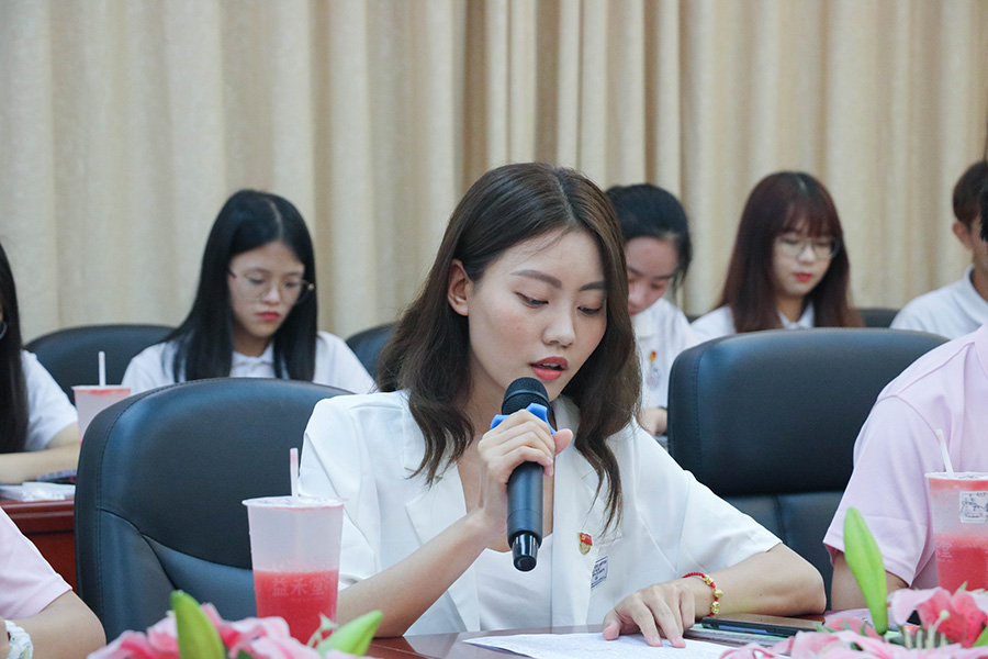 谢桉琦为本次大会作总结讲话。她对在坐的各位成员的辛勤付出表示感谢,指出我们学 院团委取得的成绩都离不开大家的共同努力。她对本次会议提出两点希望:一是希望新成员能够通过本次总结会,更好地了解组织的架构与熟悉工作;二是希望老成员能够发现不足,在接下来的日子里不断地提升自我。她希望大家在接下来的日子里继续秉持前辈们的初心与使命,继续为学院与团委奉献出自己的一份力量。