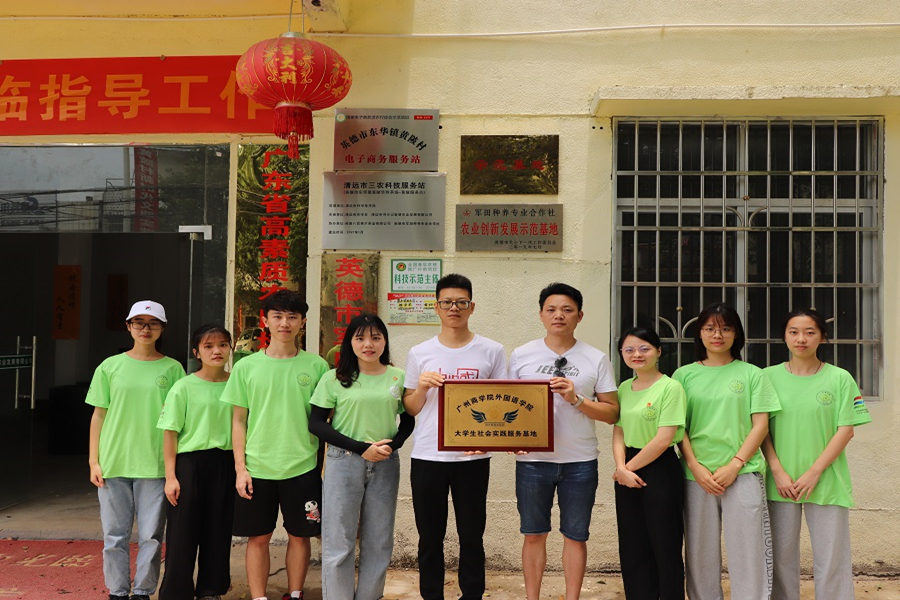 为引导和鼓励外国语学院广大青年学子深入基层企业,将理论与产业实践相结合,在基层企业中经受锻炼,以实际行动献礼党的百年华诞。外国语学院阳光展翅实践团与南茗郎农业有限公司于7月17日上午10:00在英德市南茗郎农业有限公司举行大学生社会实践服务基地挂牌仪式。参与此次挂牌仪式的有南茗郎农业有限公司创始人刘厚明、总经理罗志超,外国语学院阳光展翅实践团指导老师蔡文蝶、谢清玲以及部分队员。