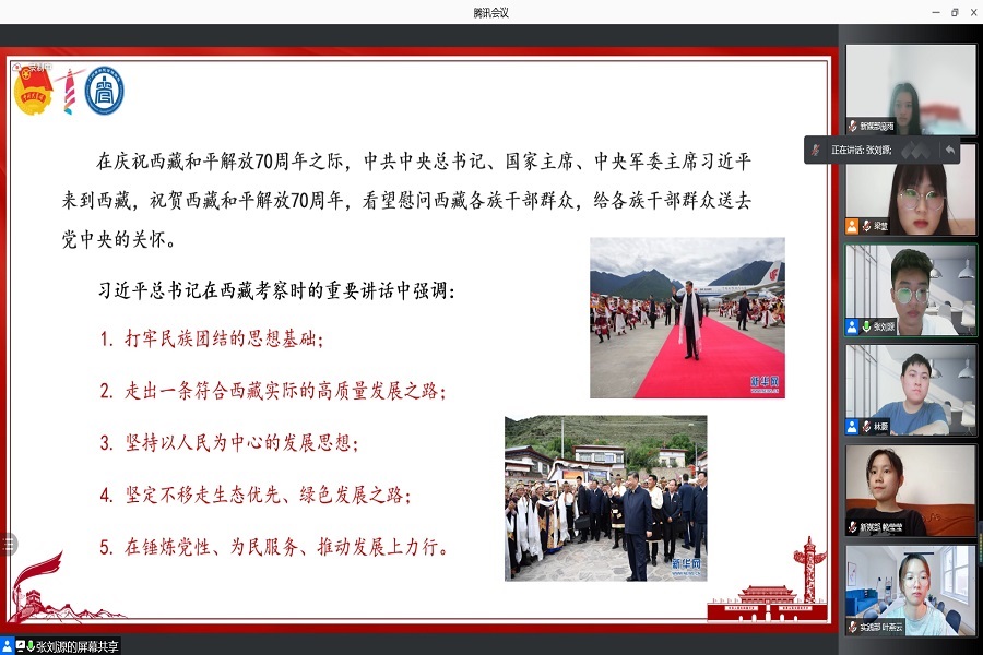 会议以“学习贯彻习近平总书记视察西藏重要讲话精神”为第一议题展开学习交流,团委副书记张刘源带领团委干部深入学习习近平总书记视察西藏重要讲话精神,以“学党史、强信念、跟党走”为主题,通过回顾西藏和平解放历史,引导团委干部从领袖足迹中感悟伟大情怀,强调要矢志不渝跟党走,积极投身于志愿服务与基层建设中去,做党史学习教育的积极践行者。