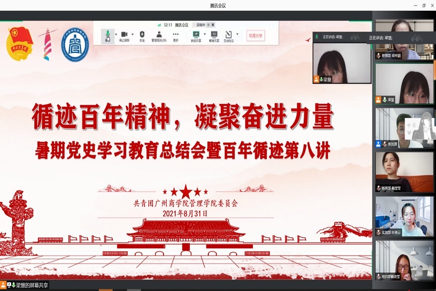 为深入学习贯彻习近平总书记在党史学习教育动员大会上的重要讲话精神,用实际行动诠释“党旗所指就是团旗所向”,总结分析暑期党史学习教育工作。共青团suncitygroup太阳集团管理学院委员会于8月31日下午在腾讯会议召开暑期党史学习教育总结会暨百年循迹第八讲。团委书记李俞妍及管理学院团委全体成员参加会议。