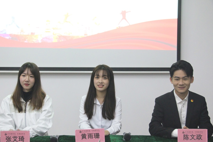 为发挥广商学子榜样引领作用,激励和带领更多学子成为新时代“四有”青年。外国语学院团委学生会于12月9日晚19:00在三教106开展了外国语学院“蒲公英计划”——优秀学生讲师团系列活动暨学生干部型分享会。出席本次大会的嘉宾有:外国语学院学生会指导老师及19级辅导员伍思颖,优秀学生讲师德语1703班黄雨珊、德语1702班陈文政及日语1801班张艾琦。