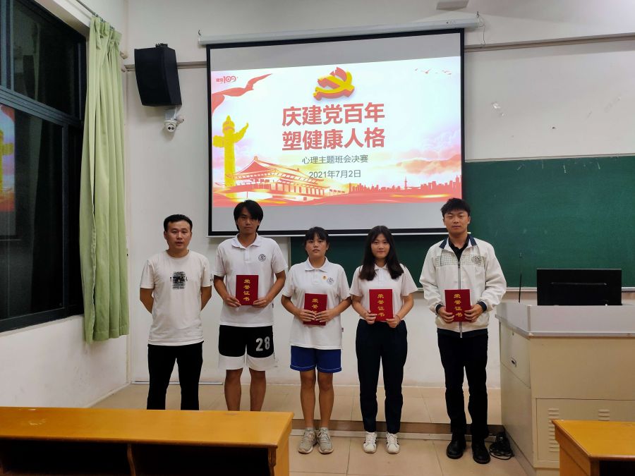 为庆祝建党100周年,营造健康和谐的校园文化氛围,同时进一步增强大学生心理健康意识,推动心理健康教育内容与形式创新,培养学生积极向上的健康心态,校团委权益部于2021年7月2日晚,在第四教学楼112室开展“庆建党百年,塑健康人格”主题班会答辩活动。校团学指导老师常立昊老师、张素平老师;涂佳佳老师、赵翠翠老师出席此次活动。