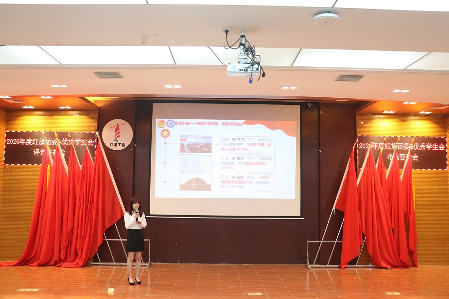 为进一步激励各级团学组织不忘初心、牢记使命,着力推进团学改革和工作模式创新,发挥红旗团委、优秀学生会等集体先进榜样示范作用,我校团学于2021年4月19日晚在第一报告厅举行2020年“红旗团委”、“优秀学生会”汇报答辩会。本次评选汇报答辩会由校团委副秘书长彭洁清、校学生会副秘书长彭斌主持,校团委李锦堂书记,校团委专职团干黄慧珍老师、曹放老师、常立昊老师,心理健康教育与咨询中心涂佳佳老师以及校团委书记处、校学生会主席团成员出席并组成答辩评审团。
