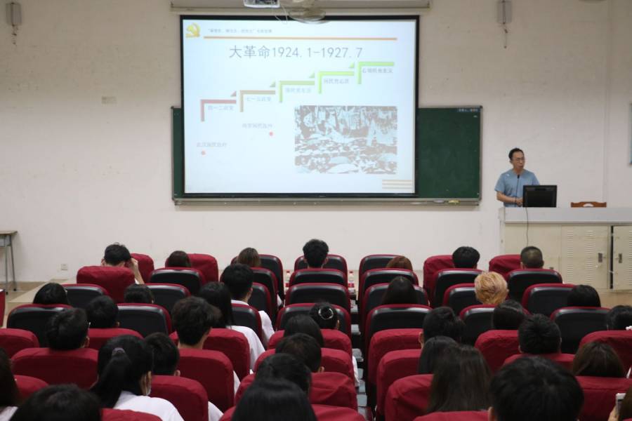 紧接着第二课刘万里老师为进一步加强同学们对党的认识和了解,通过“三湾改编”介绍了毛泽东主席是如何以其卓越的战略眼光带领人民军队大胆实践,开勇于创新的先河。在第三课上,杨红烨老师跟同学们分享了中国共产党的光辉历程,充分诠释了为什么没有共产党就没有新中国。第四课时吴妙娴老师立足于党的光辉历程,号召同学们肩负起历史使命和时代重任,要不忘初心、砥砺前行,为党和人民贡献青春力量。