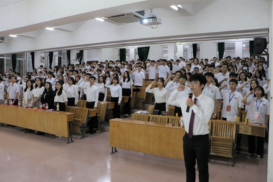 回首往昔,继往开来。上一学年学生干部张行、赵泽阳、洪耿彬、陈怡、刘丹丹、梁嘉铭分别分享干部经验与工作感想,回忆了过去一年在校团学工作的点点滴滴,表达了对离任的不舍和对新任干部的期望。在新任校团委学生副书记何泓康的带领下,全体团学干部齐声宣读自律公约。