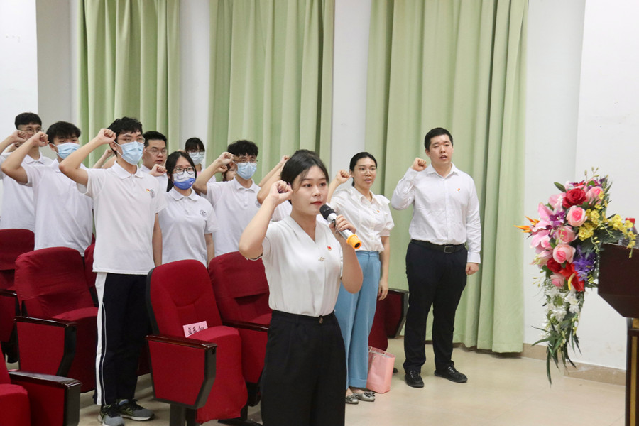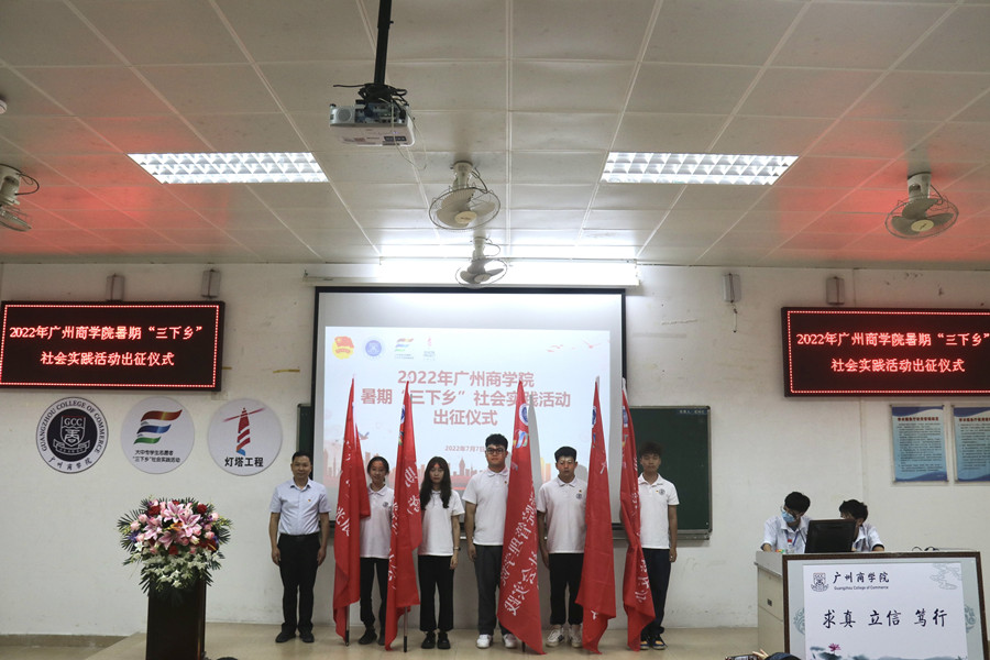 出征仪式上,何柏略为15支校级重点团队逐一授旗并合影留念,鼓励参与实践的广大同学用脚步丈量祖国大地,在实干中历练才能。校团委蓝乐钿副书记结合活动要求、团队立项、专业特色介绍本次社会实践的总体筹备情况。2021年暑期三下乡省级优秀个人称号获得者,经济学院朱虹雨同学代表志愿者发言,用自身经历激励同学们通过社会实践大舞台实现个人价值。2021 年全国大中专学生志愿者暑期“三下乡”社会实践活动优秀个人的获得者,管理学院团委书记李俞妍带领全体志愿者进行志愿者宣誓。