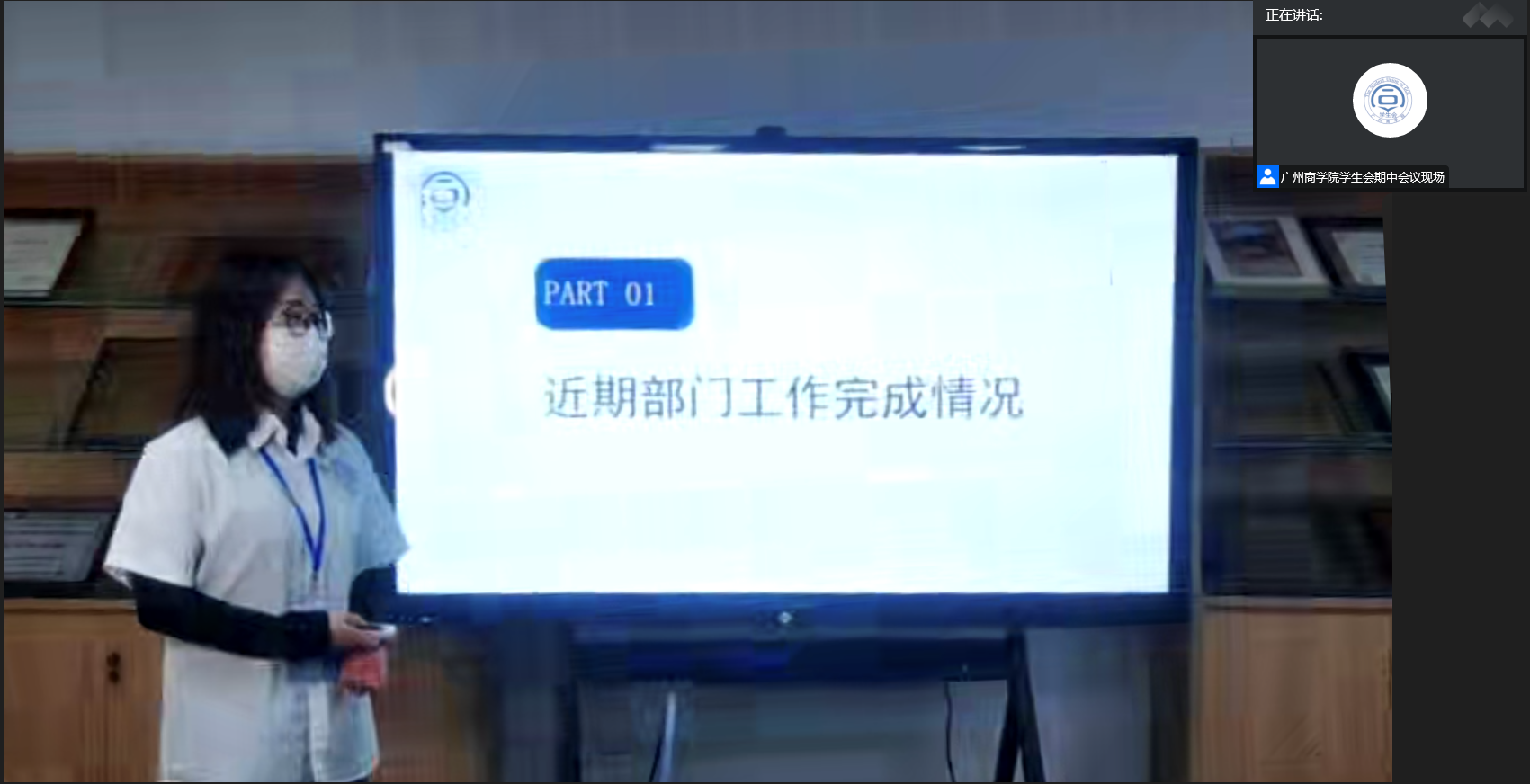 会议伊始,校学生会各部门负责人依次对部门工作进行梳理总结,从上半学期取得的工作成果、部门优势、工作不足及改进方向、下阶段的工作计划和目标等方面进行汇报,各部门负责人充分展现学生会工作人员的热情,体现了富有理想、关心同学,清新阳光的组织形象。