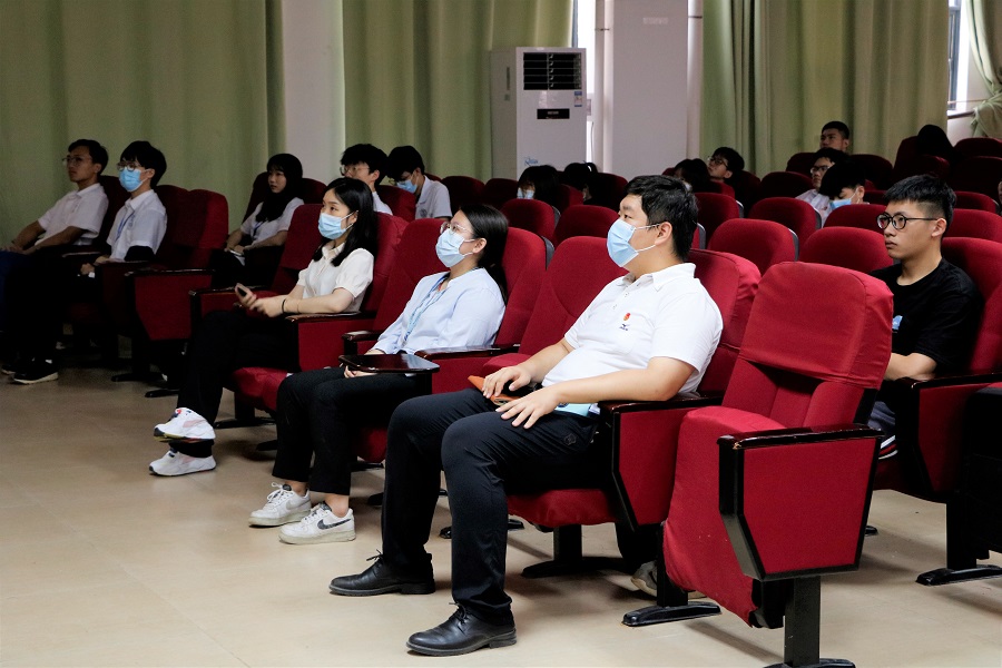 为庆祝中国共产党建党一百周年,进一步激发同学们的爱国爱党热情,坚定跟党走的理想信念,校团委于2021年7月1日上午在第二报告厅组织各学院学生以及校、院团学工作人员和固定志愿者观看庆祝建党一百周年直播大会,出席了本次活动的嘉宾有校团委专职团干黄惠珍、曹放、常立昊。