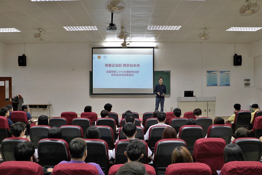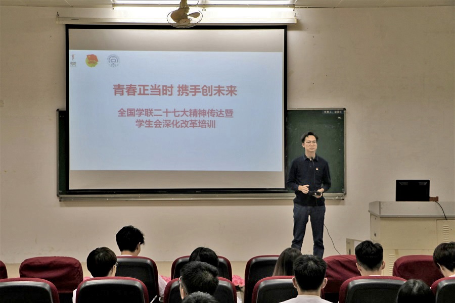 为深刻理解学生会改革,推进学生会改革工作进程,落实校院班三级联动制度,切实发挥学校和同学之间的桥梁纽带作用,校学生会于11月8日晚在四教第二报告厅召开了学生会深化改革培训会议,本次会议由校团委书记李锦堂主讲,校、院学生会全体干部出席了会议。
