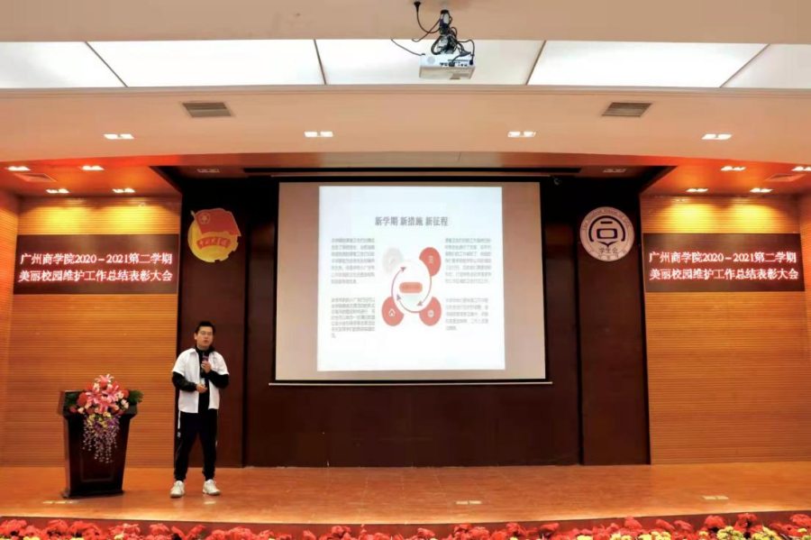 为呼吁同学们重视生活环境质量,提高同学的爱护环境意识和推广最美校园风景的理念,增强个人对于广商美丽校园的主人翁意识以及校园归属感,将个人的社会价值与广商的校风学风相结合,以此凸显个人的道德涵养,为建设文明广商“添砖加瓦”。suncitygroup太阳集团学生会权益服务部于2021年11月28日晚在第一报告厅举办美丽校园维护工作总结表彰大会。出席本次会议的嘉宾有学生发展服务中心夏鑫老师、学生发展服务中心刘俊杰老师、校学生会执行主席郑若琳及各权益服务部各部长。