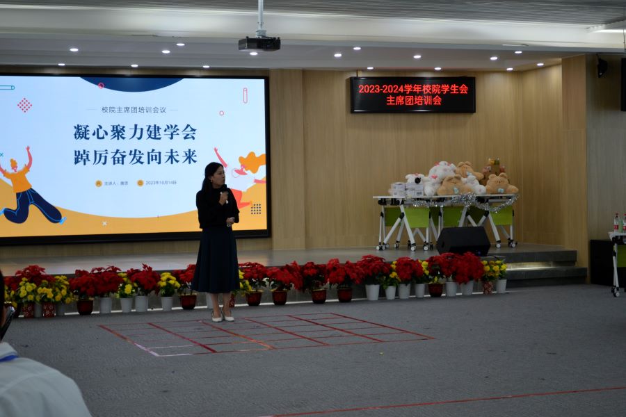 唐思对校院主席团成员的综合素质能力作四点要求,一、合作沟通能力,只有良好的沟通才能确保学生会的各项工作顺利进行;二、自我调节能力,在面对压力和挑战时保持冷静并做出正确的决策;三、时间管理能力,高效地安排自己的工作和学习,提升工作效率;四、总结反思能力,善于从过去的工作中总结吸取经验,不断提升自己的工作能力。她表示,希望校院主席团成员能够将此次活动中学到的知识和技能应用到学生会的工作当中,为全校同学提供更好的服务。